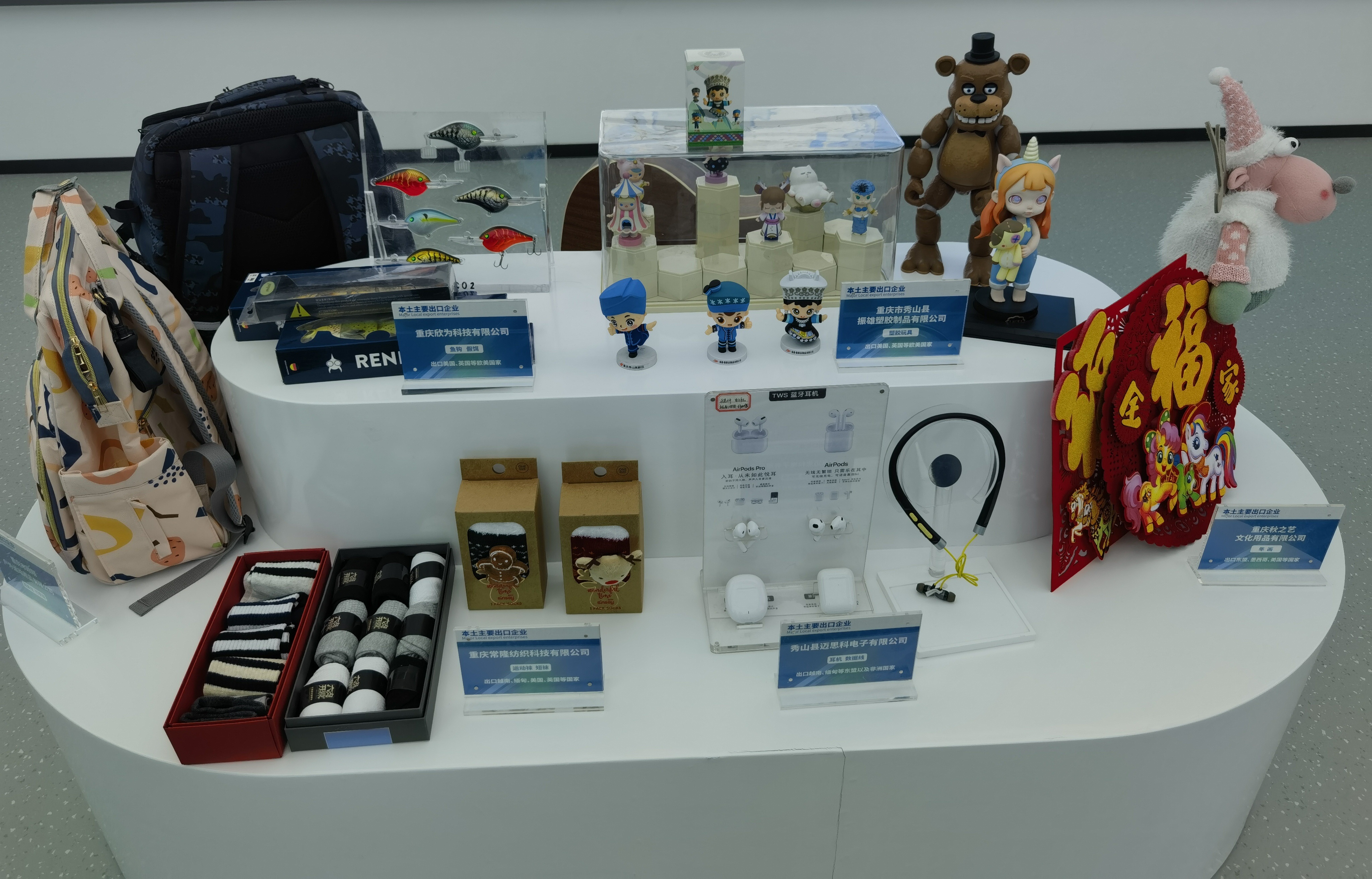 振雄塑胶制品有限公司是泡泡玛特的授权代工厂,90%以上产品出口,为秀山打通了成熟的跨境物流和销售渠道。产业园顺势搭建农产品出海选品中心,将柑橘、中药材、茶叶整合进这条产业链,跟着潮玩一起拼箱出海。