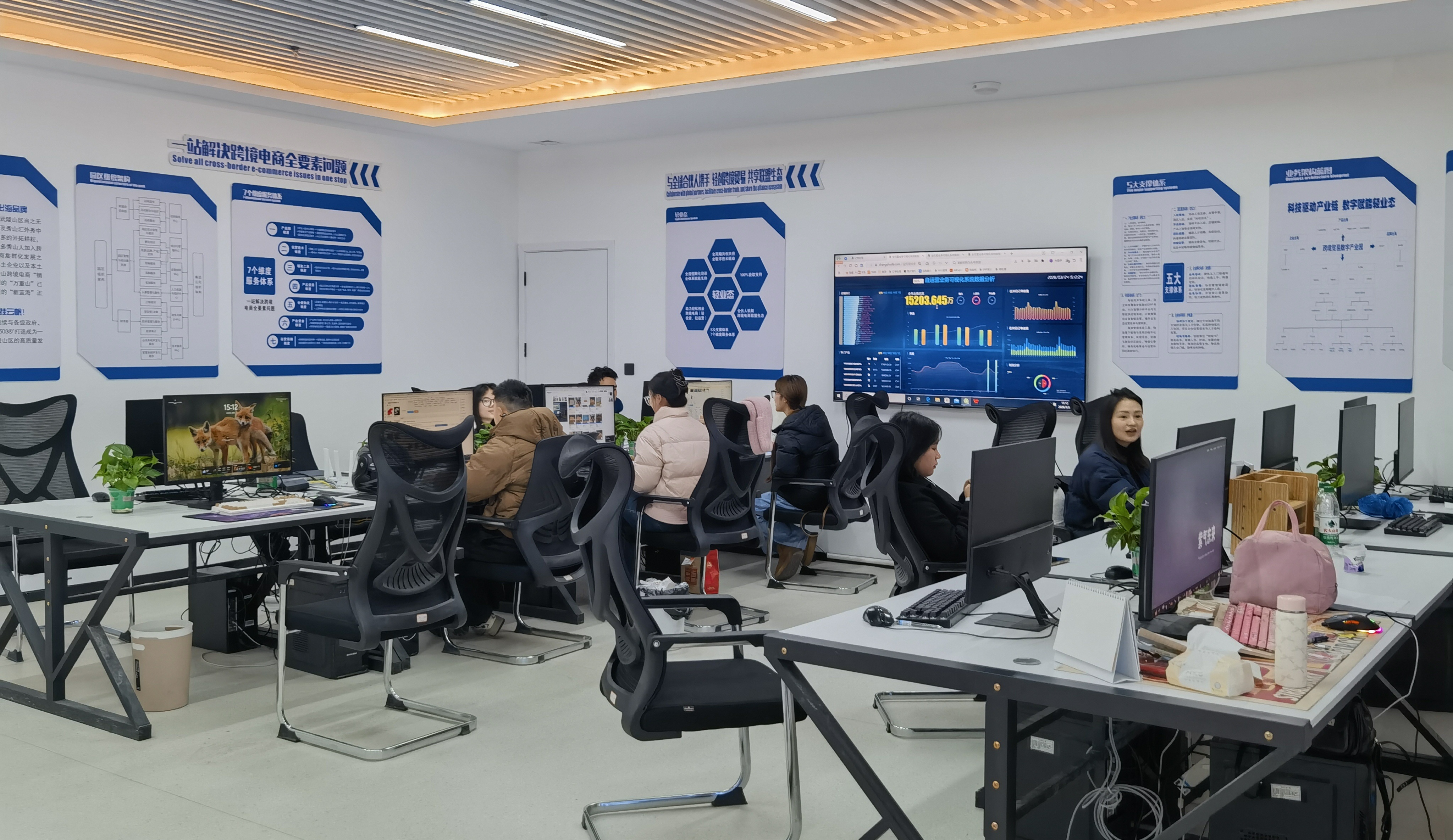 盘古秀山跨境电商集聚区总经理孙文毅介绍,园区不仅为中小企业提供海外仓免费入仓、一键代发的扶持政策,还与中国人民大学、深圳职业技术学院等高校合作定制人才培养方案,让学生“毕业即就业”。