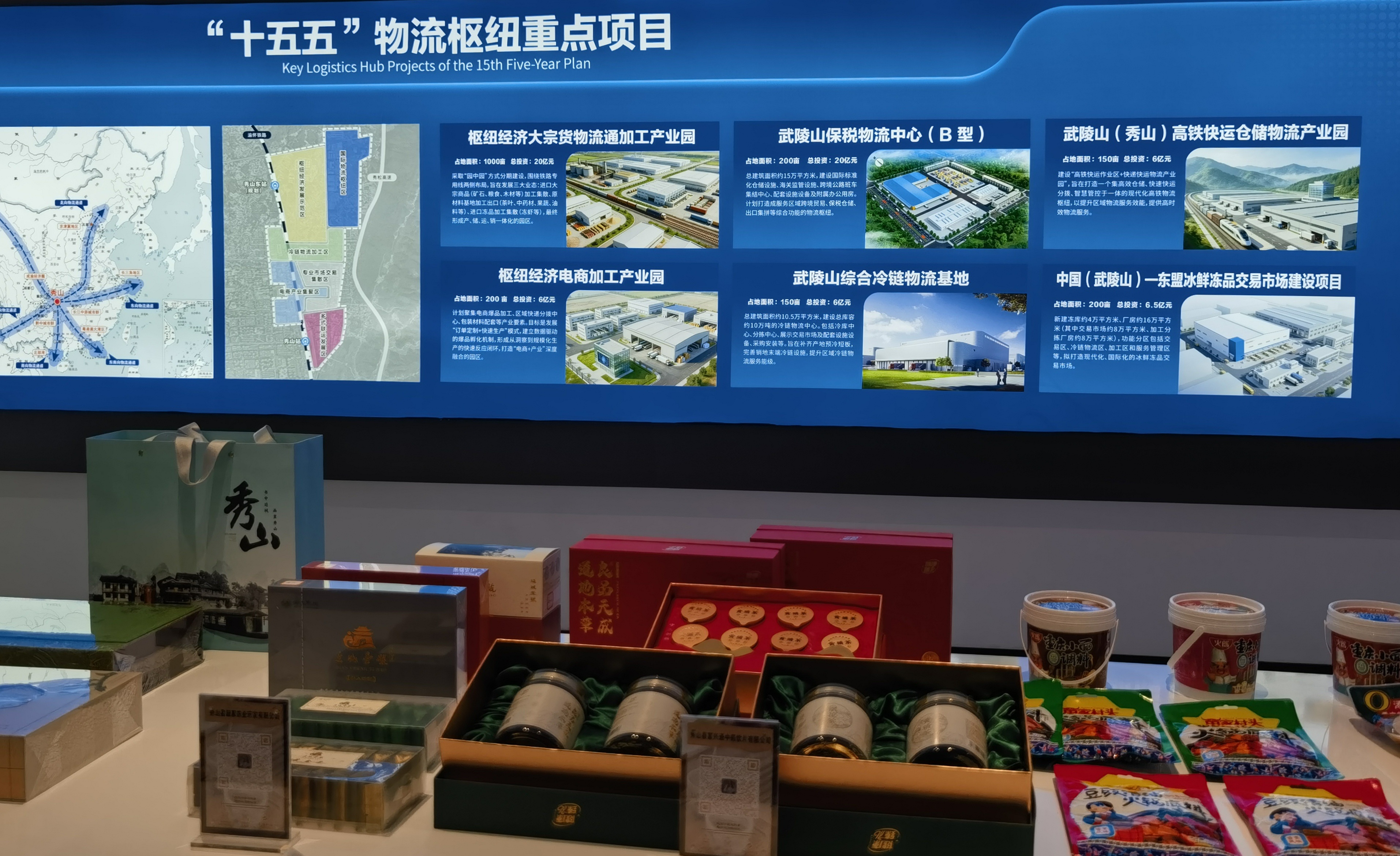 武陵山(秀山)国际电商产业园的展厅里,记者看到了一幅有趣的画面:展台上,一边是秀山黄精、山银花、茶叶等本土土货,一边是远销全球的泡泡玛特盲盒。